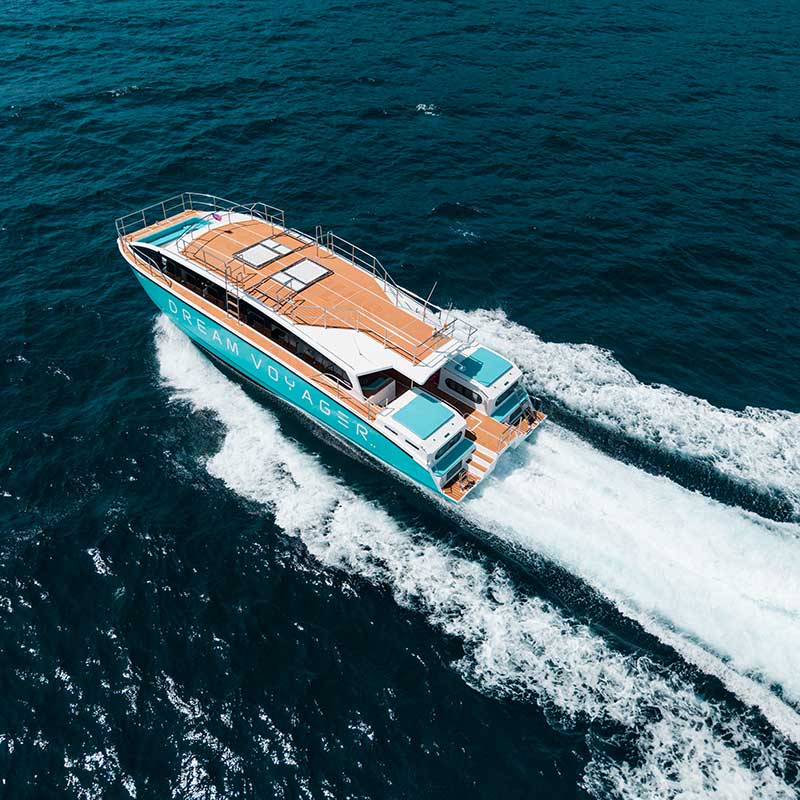 - Enjoy the comforts of a premium speed catamaran.