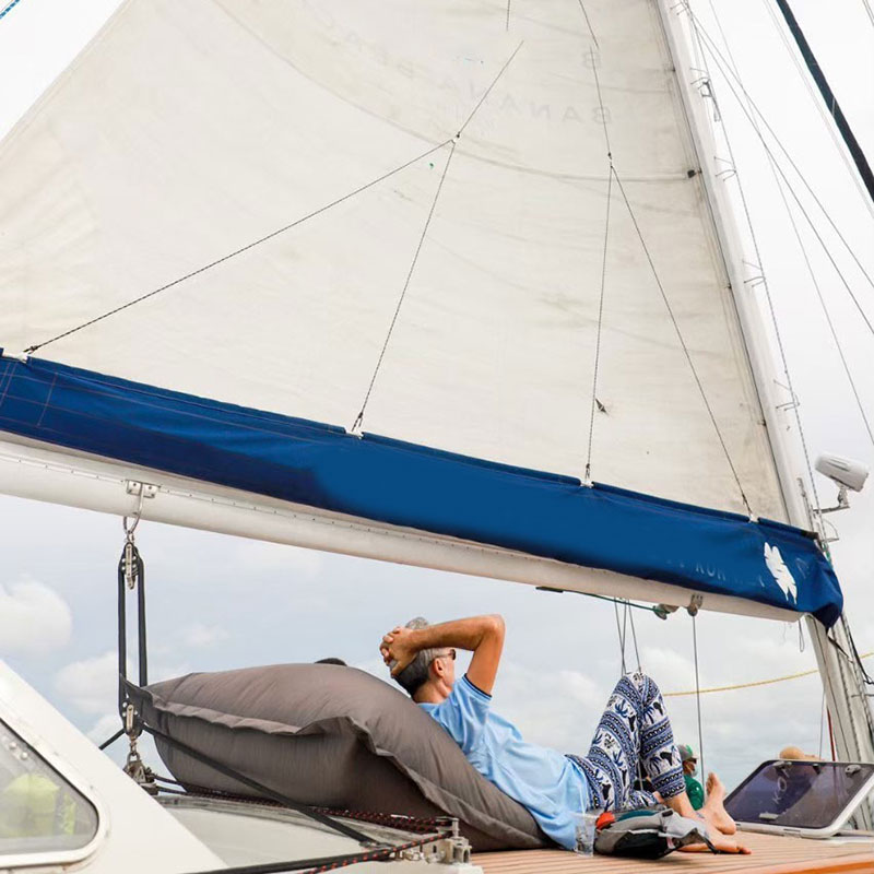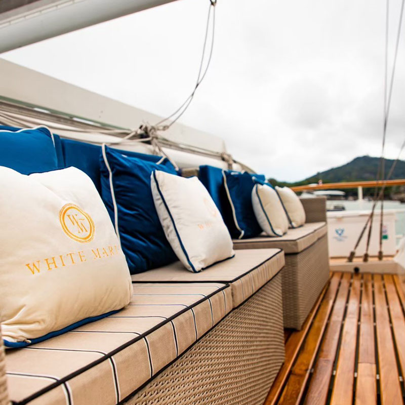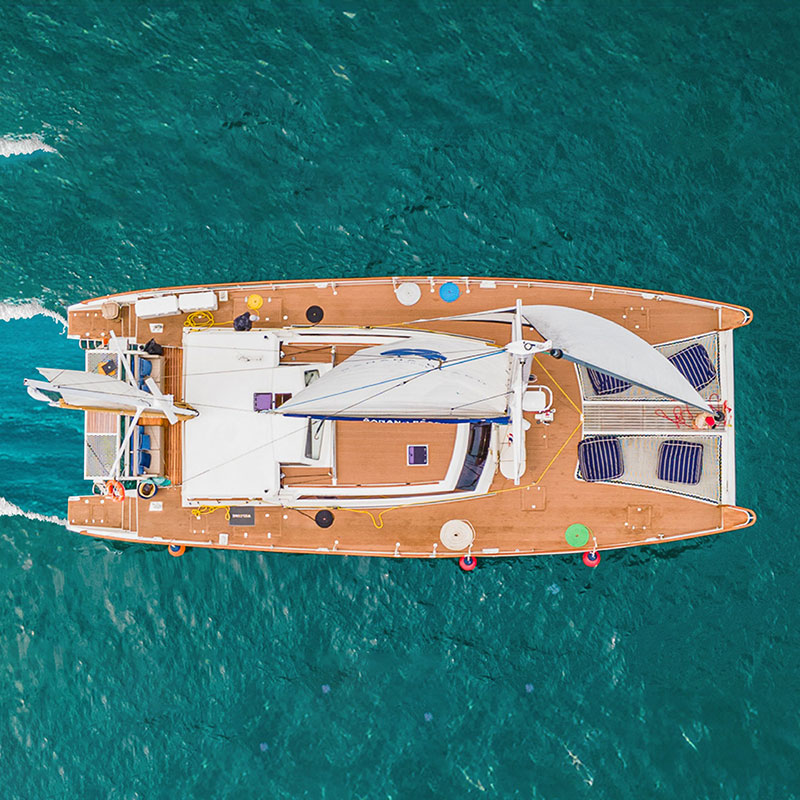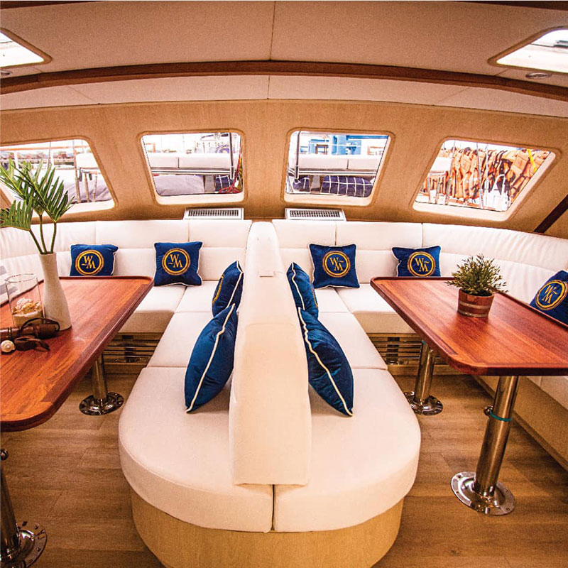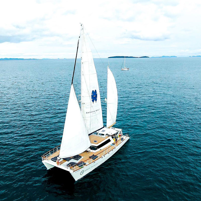 With its 60 feet of length and 8 meters of breadth, the White Marlin sailing catamaran can easily fit up to 60 people on board. Not all of this catamaran’s benefits include its modern interior, teak on the boat, and customizable design.