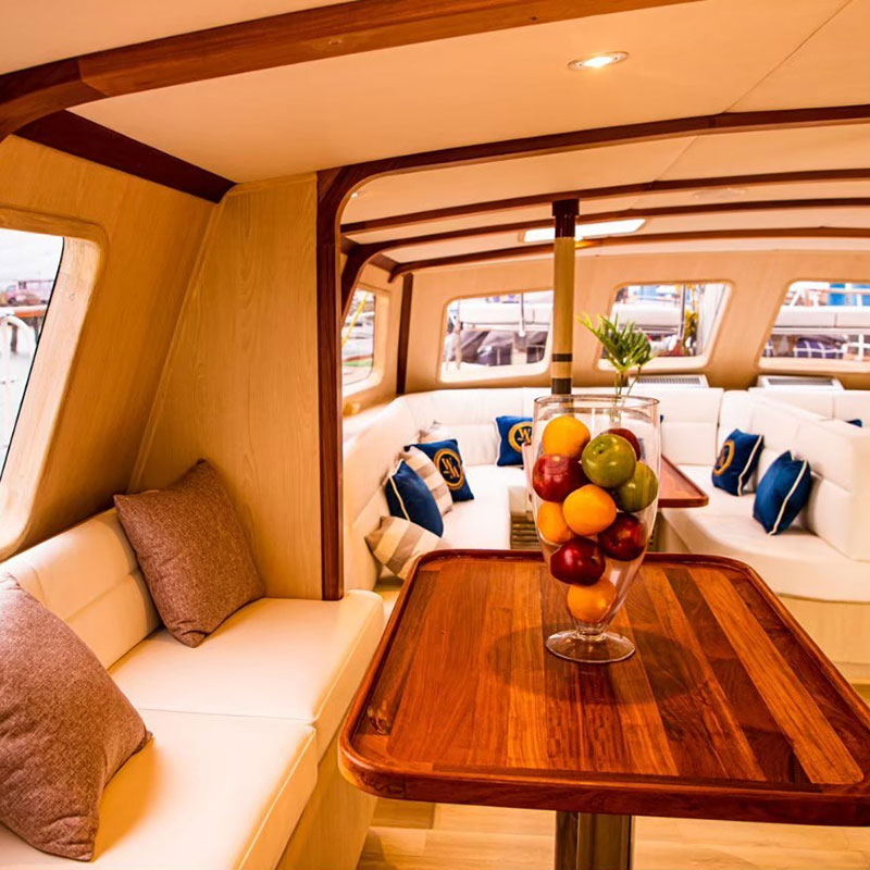 • Fruits, soft drinks, snorkeling gear, towels, and stewardess