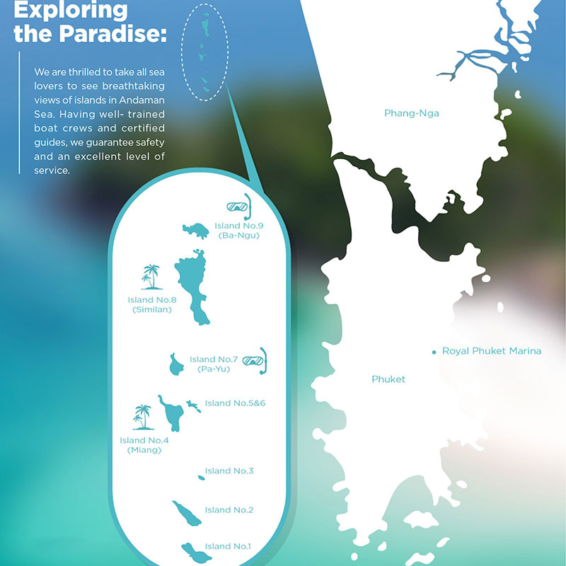 This travel is exceptional! for those who do not like to make the lengthy trip to Khao Lak Pier. Day visits to the Similan Islands are available; daily snorkeling excursions and tours leave from Phuket Royal Phuket Marina Pier.
