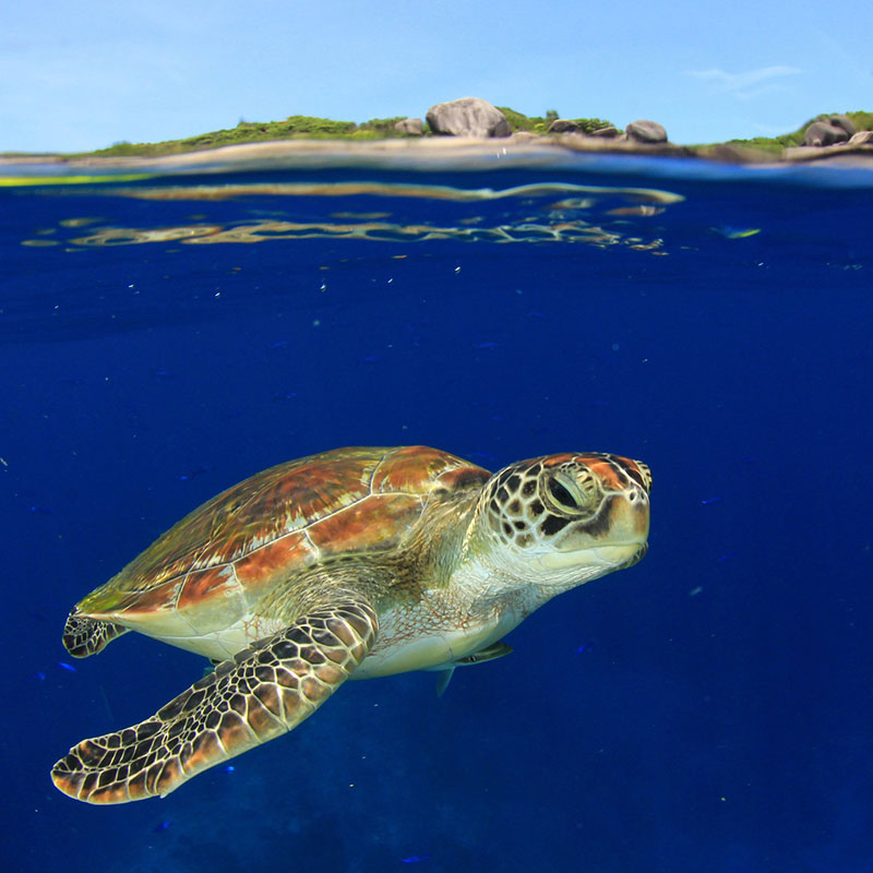 The Similan Islands are surrounded by tropical water with temperatures up to thirty degrees and 20 metres of underwater visibility, making them very desirable snorkelling locations. The nine islands offer a diverse underwater environment rich in coral reefs and a variety of marine species, such as tropical fish, parrot fish, clown fish, turtles, dolphins, and much more.